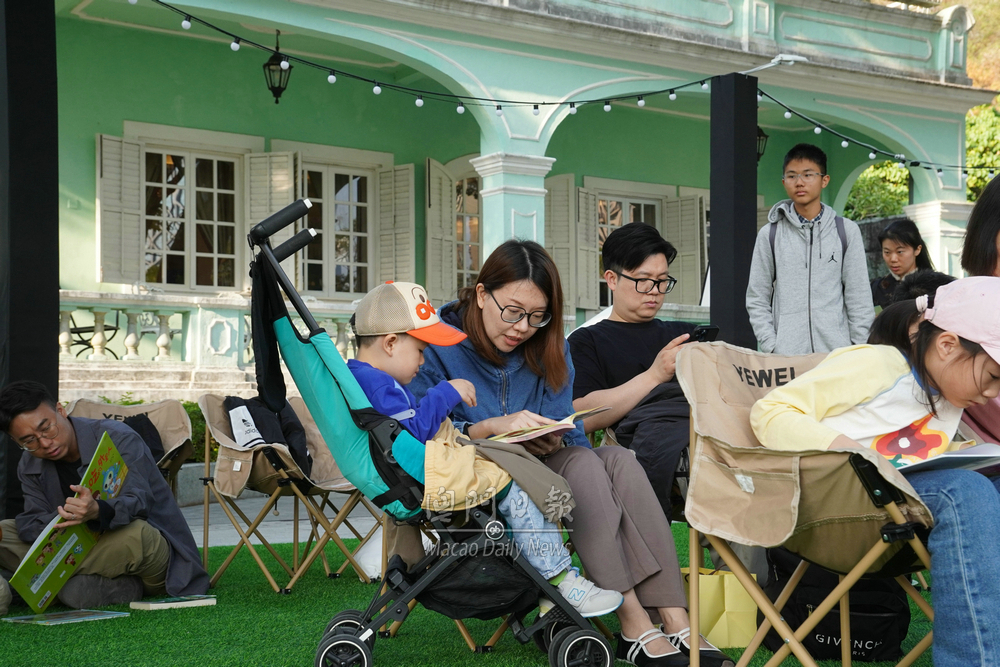 【澳門日報消息】“二○二五澳門閱讀節”現於氹仔龍環葡韻舉行。適逢周六,下午現場所見,不少家長帶同子女到場參與攤位遊戲,並一起閱讀,各適其適。 當局特別結合自然景致打造戶外圖書館與藝文書展,讓在場人士共同享受沉浸式的閱讀樂趣。