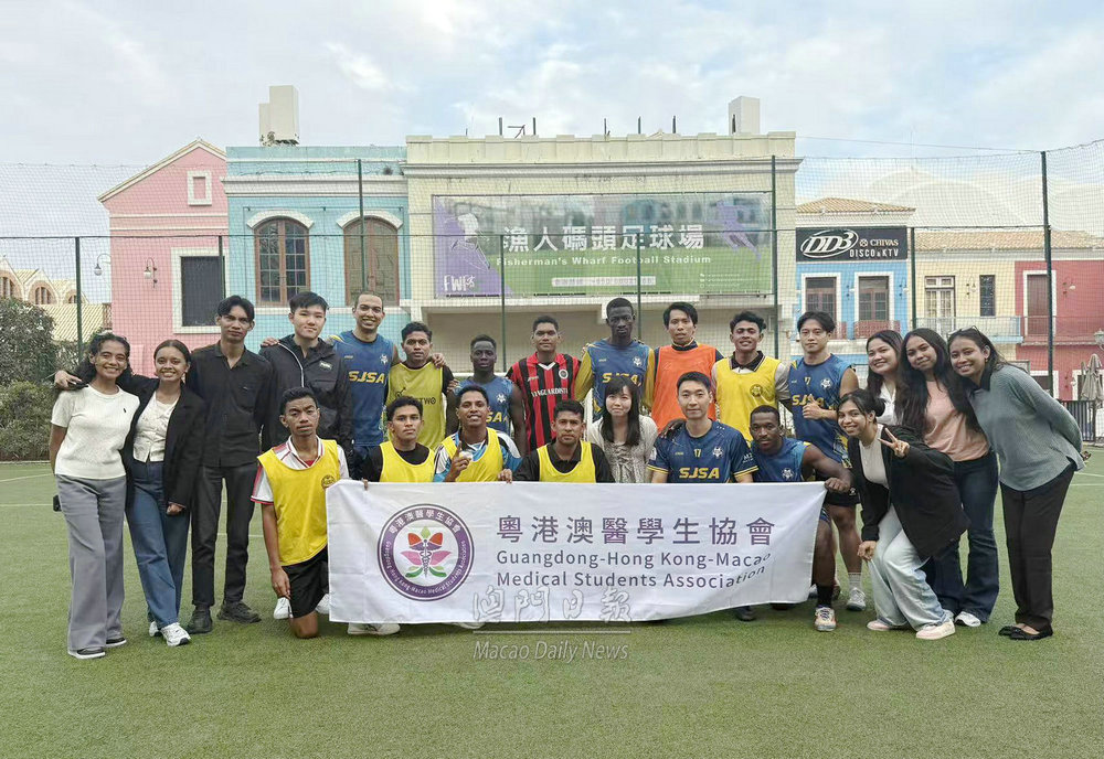 【澳門日報消息】為深化粵港澳與國際青年之間的交流互動,並倡導健康積極的生活態度,粵港澳醫學生協會今日下午在澳門漁人碼頭足球場舉辦“醫學生友誼足球交流賽”,邀請東帝汶的學生參與比賽。本澳方面則由一支本地球隊代表出戰,透過體育競技展現團隊精神與城市活力。