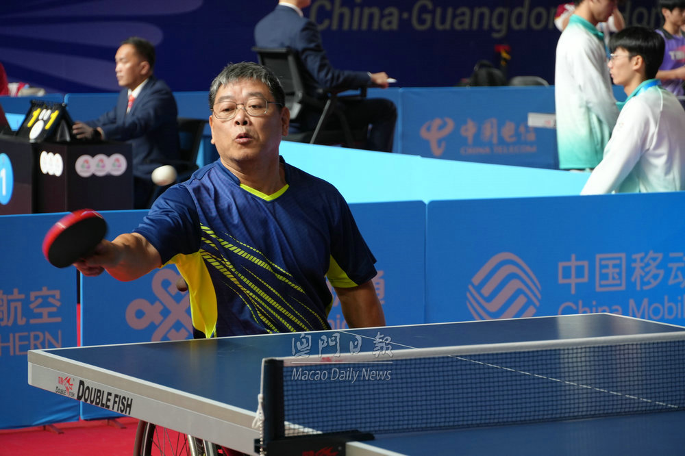 【澳門日報消息】全國第十二屆殘運會乒乓球賽今日在廣州體育職業技術學院體育館開展第六個比賽日賽程。澳門選手鍾錦倫在TT4(輪椅)男子單打小組賽C組次輪比賽中,以0:3不敵廣東選手。