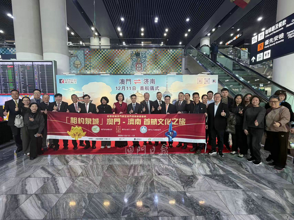 考察團一行今日下午三時十五分飛抵濟南機場,隨即舉行首航慶祝儀式。歐潤光表示,過去澳門居民需經珠海、廣州、深圳的機場飛往濟南,推動濟南直航開通是澳門公共關係協會、澳門山東省工商聯會和澳門濟南聯誼會多年來深耕的目標之一,此次首航不僅將兩地交通往來的便利性進一步升級,更開啟兩地的經貿、文化、旅遊深度合作新起點,助力齊魯文化與澳門風情緊密相連。