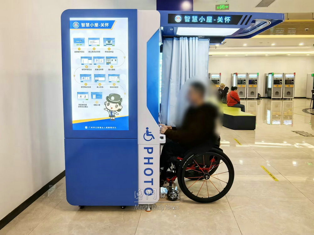 【澳門日報消息】廣州警方今日公佈,為服務殘特奧會,廣州公安出入境管理部門日前推出“關懷版智慧小屋”。申請人可無障礙行駛至“關懷版智慧小屋”,自助完成信息錄入、身份認證等;拍攝證件照時,U形感應門簾會自動閉合;完成拍照後,申請人可根據語音提示,完成個人簽名和信息核對等流程。此外,智慧小屋辦證界面更換為大字體、高對比佈局,設有普通話及粵語的全流程語音引導。