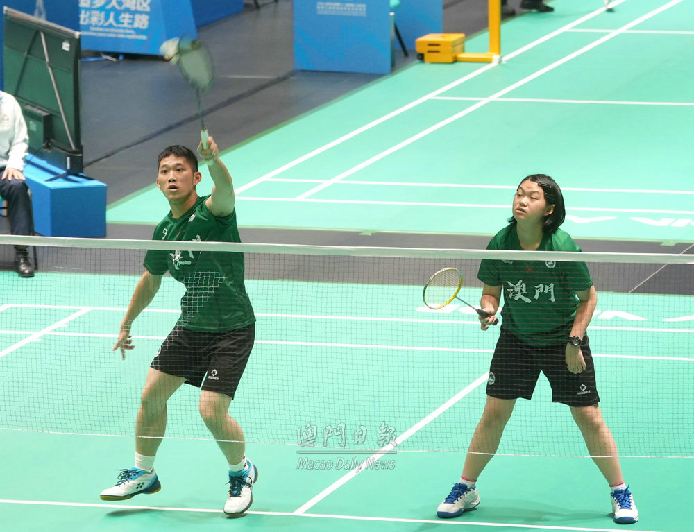 【澳門日報消息】第九屆特奧會羽毛球項目,澳門代表隊多名運動員報捷。 特奧羽毛球項目今日上午9時繼續在綜藝館上演,多名澳門運動員先後出戰單打及雙打項目。其中下午三場混雙賽,22至29歲組別兩對組合,余景輝/葉美斯率先在下午2時30分亮相,在B組小組賽第二場以局數2:1反勝山西吳若源/賈皓翔。李昶賢/余嘉雯則以局數2:0擊敗安徽曹倩茜/高炎。12至15歲青年組別,何文涵/龔梓珊同樣以局數2:0擊敗對手。 女子單打,澳門亦有李妙妍在16至21歲組別,直落兩局擊敗江西蔡紫紅。