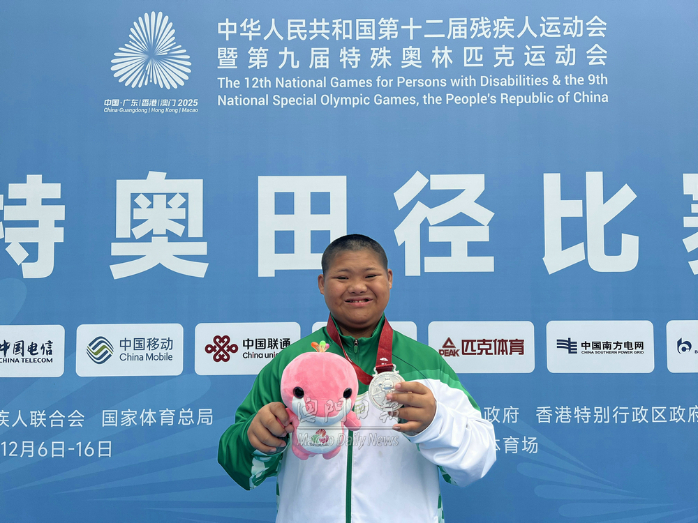 【澳門日報消息】第九屆特奧會田徑項目今日繼續在中山體育場打響。澳門隊員在短跑、中長跑、跳遠、立定跳遠和鉛球等多個項目中奮勇拼搏,最終斬獲四枚銀牌和六枚銅牌。 短跑項目中,陳曉琳出戰女子八至十一歲組五十米決賽。發令槍響,她步伐輕盈有力,最終以十二秒一九的成績斬獲銀牌。曾愷悠同樣在該項目比賽中全力衝刺,以十三秒〇二的成績獲得銅牌。男子組決賽中,王德康跑出以九秒三八成績,奪得銀牌。 值得一提的是,陳曉琳和曾愷悠昨日還雙雙出戰女子八至十一歲組立定跳遠決賽。陳曉琳憑藉一米〇七的成績摘得銀牌;曾愷悠也以一米〇六的成績獲得銅牌。 賽後,對於今日收穫的兩枚銀牌,陳曉琳眼中閃爍著激動的光芒。曾愷悠則開心地分享比賽感受,笑說在跳遠比賽時想像自己是一隻蹦跳的小兔子。 澳門隊教練胡炳駒賽後受訪稱,為了備戰本次比賽,隊員們已訓練約兩年,頻率根據隊員們的能力科學安排,一般一周訓練三天,著重提升她們的協調性和柔韌性,等她們長大些再逐步發展力量。 他坦言,在訓練時注重培養隊員們的興趣,避免強度過大給她們帶來壓力。認為比賽的最大意義是讓她們突破自我的小圈子,在賽場上展現自我,增強自信心和成就感。 澳門隊員在其他項目中也表現出色。其中,男子十六至二十一歲組鉛球決賽中,李福勤以五米二六的成績收穫一枚銀牌;王家樂則以五米〇二的成績摘得銅牌。在男子十六至二十一歲組八百米決賽中,王家樂憑藉三分七秒〇六的成績獲得銅牌。曾子慧在女子十二至十五歲組二百米決賽中,跑出三十九秒八三的成績獲得銅牌。張嘉琪在女子十六至二十一歲組跳遠決賽中,憑藉一米四七的成績贏得銅牌。