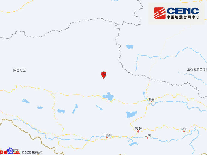 【澳門日報消息】中國地震台網正式測定,今晚7時59分,在西藏那曲市雙湖縣(北緯32.95度,東經88.65度)發生5級地震,震源深度10公里。