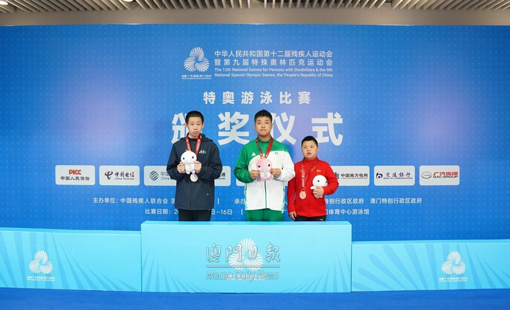 【澳門日報消息】第九屆特殊奧林匹克運動會游泳比賽今日下午繼續在廣東江門體育中心游泳館舉行。澳門代表隊100米蛙泳項目再傳捷報,獲一金一銅。 其中,12歲至15歲組,禤軾瑜1分51秒13戰勝內蒙古和雲南選手,獲男子三組金牌。16歲至21歲組,黃子毅獲男子二組銅牌。 截至今日比賽結束,澳門代表隊在特奧游泳比賽中,已獲10金14銀10銅。