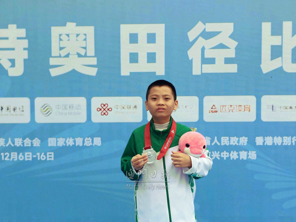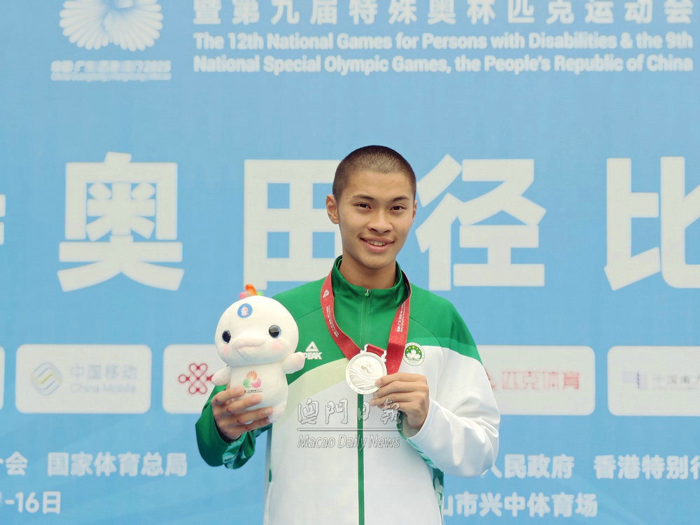 【澳門日報消息】第九屆特奧會田徑賽事今日在中山體育場激戰正酣。澳門特奧隊延續奪牌勢頭,在立定跳遠、短跑和中長跑項目中多點開花,共收穫兩枚銀牌與五枚銅牌。 在男子八至十一歲組立定跳遠決賽中,澳門小將王德康發揮穩健,以一點五米的成績摘得銀牌,為澳門隊贏得開門紅。男子十六至二十一歲組二百米決賽競爭尤為激烈,黃浩奮力衝刺,以二十六秒四一的成績衝線,僅以零點二七秒之差惜敗寧夏選手蘇錦波,為澳門隊再添一枚銀牌。黃健鴻在男子三十歲以上組二百米決賽中,以三十五秒七一的成績收穫一枚銅牌。 中長跑項目亦有收穫,朱啓忠在男子二十二至二十九歲及三十歲以上組八百米決賽中,以兩分五十二秒一三的成績完賽,摘得銅牌。 女子賽場同樣捷報頻傳,蕭嘉敏在女子二十二至二十九歲組一百米決賽中跑出十八秒二零的成績,獲得銅牌;吳敏怡則以十八秒四六的成績位列第四。女子十六至二十一歲組二百米決賽中,澳門選手張嘉琪(成績四十秒八一)與王飛燕(四十四秒七二)雙雙站上領獎台,分別獲得該項目第一組和第五組的銅牌。 另外,今日在中山體育館舉行的特奧滾球十六至二十一歲組混合團體賽中,由葉俊希、曾培傑、張雅雯、屈杏美組成的澳門隊發揮穩定,憑藉默契的配合與出色的戰術執行,最終獲得一枚銅牌,為澳門隊再添榮譽。