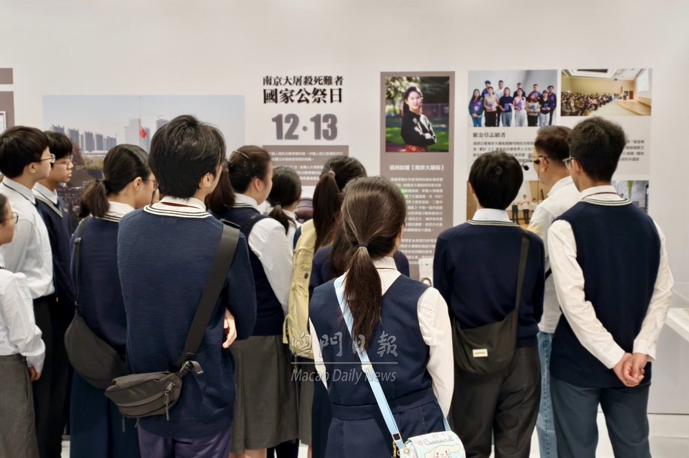 【澳門日報消息】由澳門口述歷史協會與侵華日軍南京大屠殺遇難同胞紀念館等單位聯合主辦的“永恆的記憶——南京大屠殺文獻展”,現於中國與葡語國家商貿合作服務平台綜合體展出。今日適值第十二個南京大屠殺死難者國家公祭日,本澳眾多學校組織師生進場觀展,視展場為生動的歷史課堂。