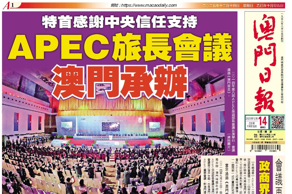 【澳聞頭條】APEC旅長會議澳門承辦 【要聞頭條】石泰峰:堅定走和平發展道路 【經濟頭條】經濟學會:明年實質GDP增2-5% 【體育頭條】曼城搶分“宮”到底