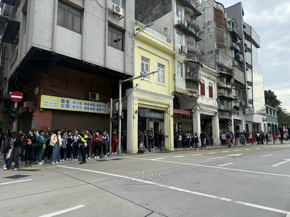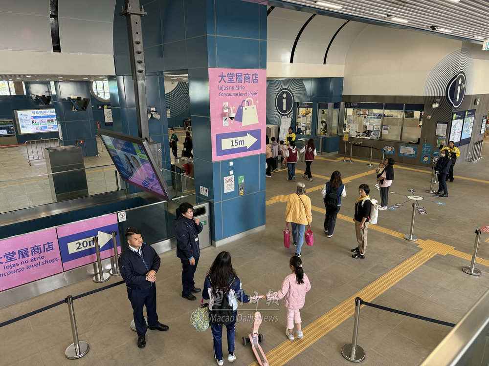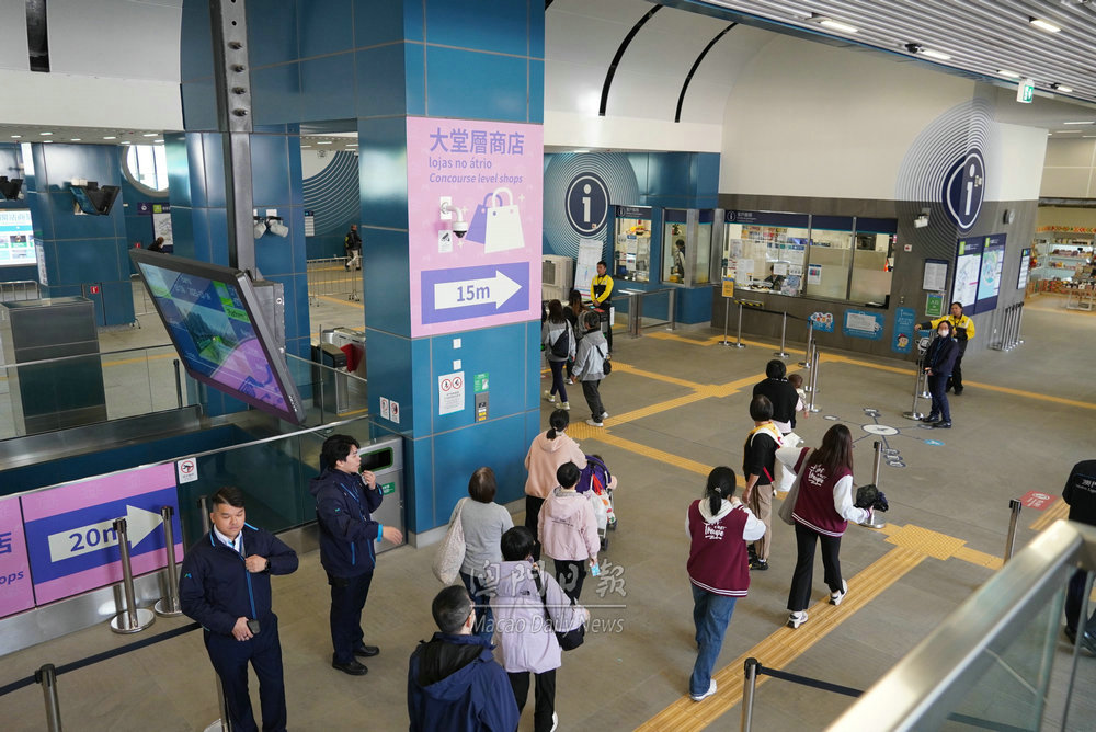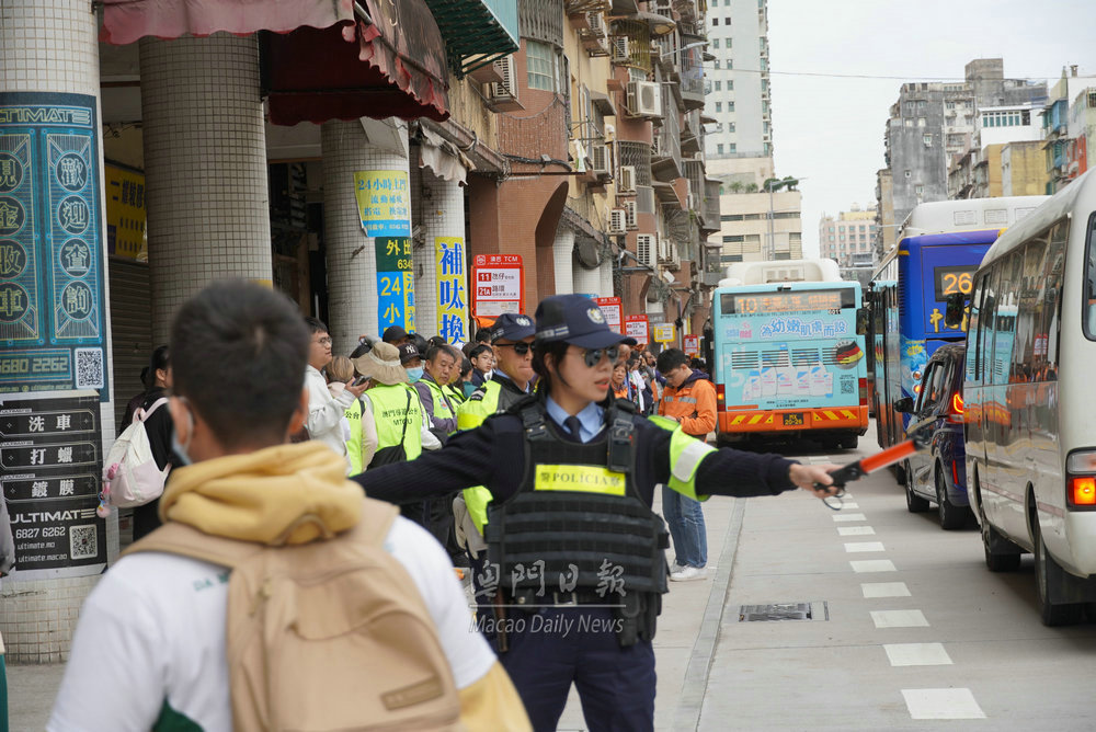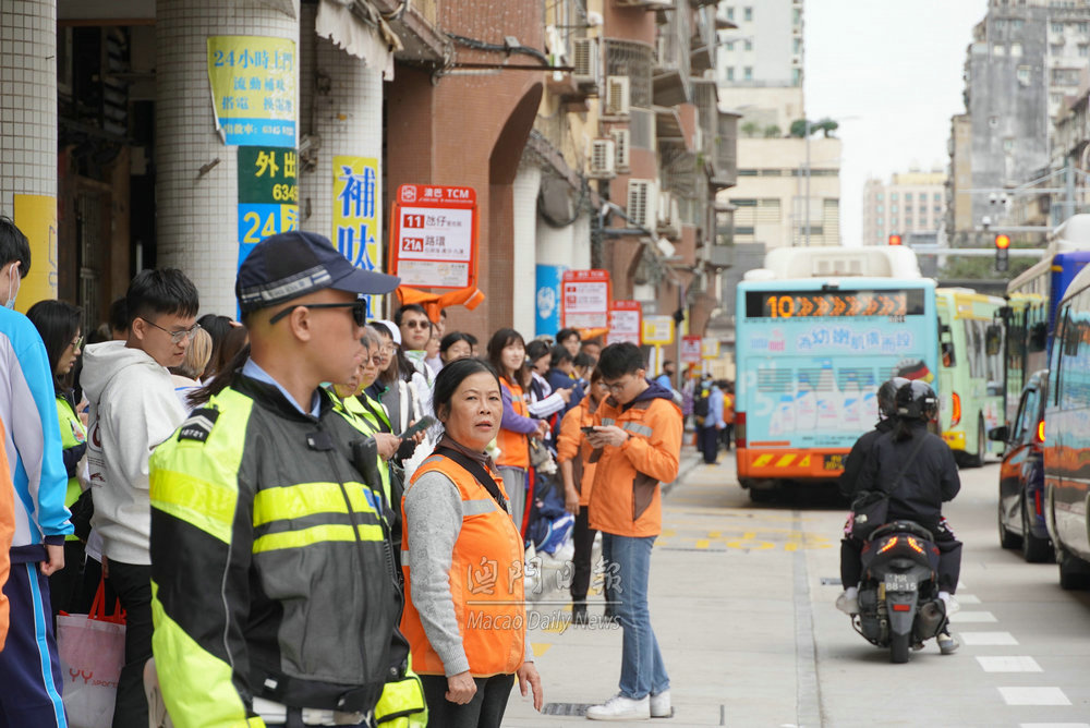 【澳門日報消息】第四十二屆公益金百萬行活動成功舉辦,參與步行隊伍人潮陸續有序散去,在終點媽閣附近的巴士站,現場有交通警員以及兩巴工作人員維持秩序,疏導人流。同時,輕軌媽閣站亦有大批工作人員在場指示,秩序井然。
