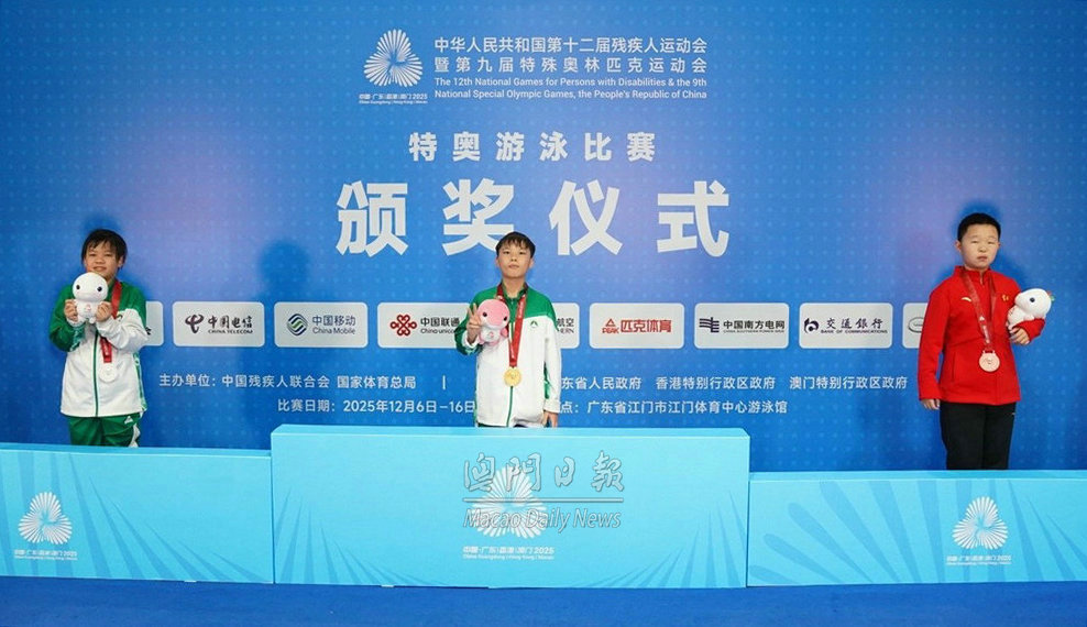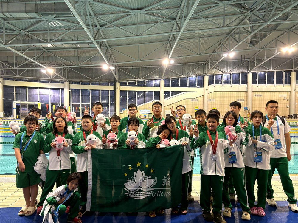 【澳門日報消息】第九屆特殊奧林匹克運動會游泳比賽,今日在廣東江門體育中心游泳館收官。澳門代表隊今日下午再接再厲,斬獲二金五銀六銅,同時將本屆特奧游泳獎牌數鎖定為13金22銀17銅。 100米自由泳項目中,8至11歲低齡組,黃灝銘以1分36秒52獲男子一組金牌,隊友郭景駿獲銀牌;12至15歲組,禤軾瑜以1分20秒75獲男子二組金牌,隊友吳宇恆獲銀牌;李嘉昇獲男子五組銀牌;劉璟雯、呂筱悠分獲女子二組銀、銅牌;袁子瑜、馮樂怡分獲女子三組銀、銅牌;16至21歲組,杜敏莉獲女子一組銅牌;22至29歲組,湯文昊獲男子一組銅牌。 50秒蝶泳項目中,12至15歲組,吳君陽獲男子一組銅牌;劉璟雯獲女子一組銅牌。 主教練蕭宇寧坦言,參賽的大部分運動員無大賽經驗,13金22銀17銅的佳績,證明他們擁有不斷突破自我的良好心態,作為有障礙人士,亦取得突破藩籬的鑰匙,為澳門隊的表現打滿分。 他感謝澳門特殊奧運會一直為游泳隊提供全年性、系統化訓練,包括陸上體能與泳式技術專項訓練,每周不少於五天,並在隊內舉行多次遴選,令經驗尚淺的隊員們充分備戰。強調教練團隊秉持“勇敢嘗試,爭取勝利”的特奧精神,助力21名參賽運動員刻苦訓練,不斷突破成績。勝利果實不在於獎牌多寡,而在於運動員從參賽歷程中能成長起來,在日常生活中更進一步。