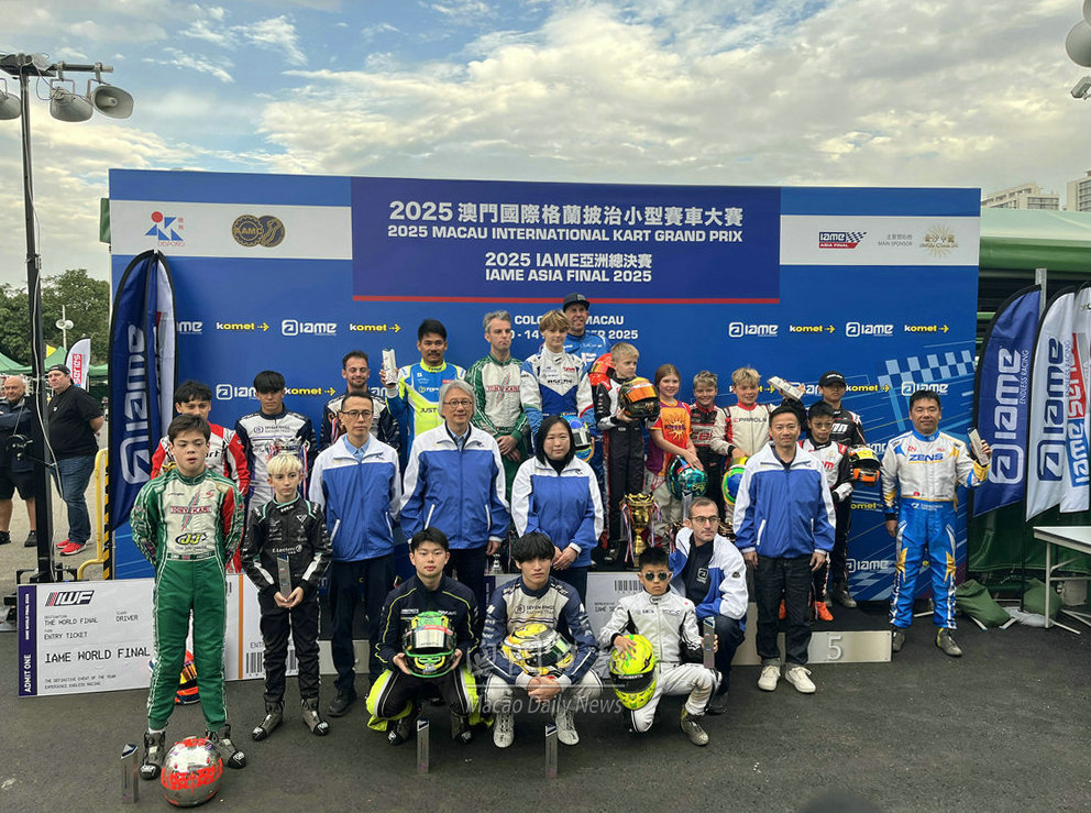 【澳門日報消息】由體育局、中國澳門汽車總會、OTK小型賽車亞洲區及IAME亞洲區主辦,金沙中國有限公司贊助的“2025澳門國際格蘭披治小型賽車大賽”,今日下午在路環小型賽車場舉行煞科日。 泰國車手杜比與意大利車手丹尼在壓軸上演的成人組決賽鬥足全場,杜比最終在尾段擺脫丹尼,以16分34秒292奪冠。