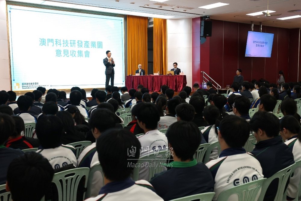 【澳門日報消息】經濟及科技發展局今日下午四時半假工聯職業技術中學舉行科技研發產業園學生專場意見收集會。 高三饒同學表示,平時課後都有參加不同的科技創新比賽,會用不同AI軟件做輔助工具,以解決不同問題,對AI科技轉變成產品並使用比較感興趣。大學選擇藥學系作為升學方向,希望將來可結合利用AI科技與藥學知識,開發病人快速診症及配藥的平台。 本澳有生物科技產業和人工智能產業,跨領域合作帶來機會及挑戰,認為應好好裝備自身,成為高新科技的掌控者而非被取代者。並藉此吸引更多國際企業落戶澳門,推動產業多元發展,不僅是科技層面的創新與突破,更是兼顧產業升級與民生保障的重要舉措。 高三李同學指出,參加意見收集會後,對澳門科技產業發展有更清晰的認知與期待,進一步了解本地科創產業情況。澳門長期以博彩業、旅遊業為主導,面臨經濟適度多元化難題,科技園建設有利促進發展。同時為青少年未來就業及科創方向發展提供支撐,科技園可提供充足科創空間與實踐平台,吸引眾多高新科技企業落戶澳門,澳門青少年可獲得更多進入企業實習、交流的機會,施展科創潛能。