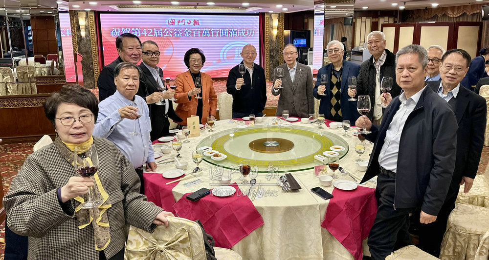【澳門日報消息】第四十二屆公益金百萬行昨日順利舉行,本報今晚設宴慰勞澳門日報讀者公益基金會全體理監事和有關工作人員、義工,祝賀活動圓滿成功。 慰勞宴今晚七時假嘉年華大酒樓舉行,澳門日報讀者公益基金會會長賀定一,副會長飛安達、黃如楷、王彬成、岑展平、姚汝祥、許建章,理事長黃國勝,監事長吳柱邦,常務副理事長何凱玲、鄺鍵濠等負責人,以及理監事應邀出席。本報總編輯崔志濤主持。 本報社長陸波致詞祝賀今屆公益金百萬行活動舉辦得非常順利,效果極佳,取得了圓滿成功,感謝社會各界支持。今屆活動具天時、地利、人和,能取得如此優異成績,既是大家共同努力成果,也幸得老天眷顧,天氣晴好。特別感謝公益金各位領導、同仁歷經一年的辛勤籌備,將百萬行活動辦得如此完善,社會反響熱烈。綜觀今日報章新聞及圖片,全面呈現了昨日盛況,既能行善助人,又能鍛煉身體,同時也營造了企業文化。期待公益金百萬行越辦越好,不斷提升影響力。同時亦盼通過百萬行所籌集的社會資源,能幫助更多需要關懷人士。澳門日報定當全力做好宣傳工作。 賀定一表示,公益金百萬行走過四十二載,已從慈善步行昇華為匯聚社會愛心、彰顯“人人為我,我為人人”精神的年度慈善嘉年華。今年逾四萬人參與,共籌得一千七百萬善款,體現了澳門人樂善好施、和衷共濟的優良傳統,以及對“取諸社會,用諸社會”宗旨的堅定認同。強調公益基金會始終秉持初心,將善款用於慈善公益、助學育才、關懷弱勢等事業,並與政府福利互補,共同織密澳門的“社會保障網”。 她認為,活動成功有賴社會各界同心協力,尤其感謝澳門日報長期以來的全力宣傳與深入報道,大幅增強了公益基金會工作的透明度與公信力。同時讚揚該會全體理監事積極參與,精心策劃、全情投入,以團結協作的精神確保了活動圓滿舉行。公益基金會將續以“守正創新”為方向,既堅守扶貧濟困初心,亦致力創新慈善項目,與時俱進地提供更精準、更具影響力服務,讓百萬行這張澳門“慈善金名片”更加閃亮。 黃國勝表示,儘管活動當日天氣寒冷,仍能提早順利完成,並籌得逾一千七百萬善款,足見大眾熱心公益,情懷不減,這份成果有賴各界齊心協力。感謝各位公益基金會會董、合作伙伴及義工朋友的無私付出。感謝傳媒朋友不辭勞苦,深入報道與宣傳,讓善行廣傳,同時感謝所有善長仁翁的慷慨捐助。 吳柱邦、許建章感謝全體理監事全心全意支持和參與,也感謝所有工作人員堅守崗位,發揮團隊精神,令活動順暢。期望未來百萬行更上一層樓,延續慈善公益愛心。 出席宴會還有副理事長梁勵、劉永年、崔家榮、陳敬濂、姚家聰、蘆茜儀、吳民豪、胡玉沛,副秘書長吳紫薇,理事王思弘、何偉業、李仲言、李美芬、李家賢、林卓華、林蔚樂、施萬龍、飛明義、孫仲佳、曹志賢、曹嘉銘、莫燕蘭、陳偉良、黃耀倫、楊駿、蔡進一、黎錦發、蘇國夫,監事陳榮森、梁錦洪,以及支援公益基金會和百萬行工作的工作人員。 陸波,本報副社長兼總經理溫能漢,崔志濤,常務副總編輯蔡彩蓮,副總編輯林保華、司徒偉業、李永順,辦公室主任伍婷,副總經理林耀明,助理總編輯黃楚慧、陳文戈,採訪總主任黎溢康,採訪副總主任楊冠傑等在場迎迓嘉賓。本報、公益金負責人並到各席敬酒,感謝大家長期支持和衷誠合作。