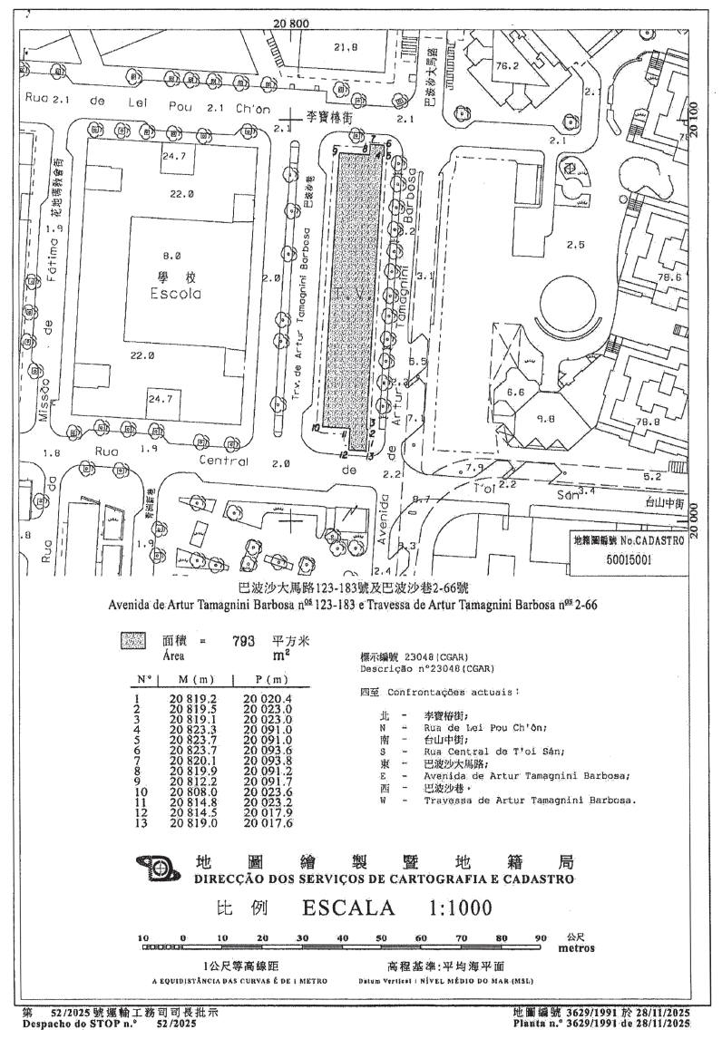 【澳門日報消息】政府公報今日刊登運輸工務司司長批示,宣告房屋局捨棄一幅以租賃方式無償批出,面積為793平方米,位於澳門半島,巴波沙大馬路123至183號及巴波沙巷2至66號,其上曾建有嘉翠麗大廈B座,標示於物業登記局第23048號的土地的批給。 鑒於上款所指的捨棄,將上述無帶任何責任或負擔,價值為2,220,400澳門元的土地歸還給國家,以納入其私產。本批示即時生效。