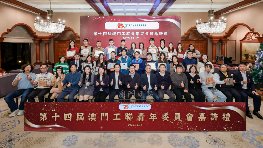 【澳門日報消息】澳門工會聯合總會青年委員會昨晚七時假雅辰酒店宴會廳舉辦第十四屆委員嘉許禮,表彰過去三年積極參與青委工作、助力社會發展的優秀個人與傑出項目,冀進一步激發青年參與社會事務的熱情,凝聚青春力量。