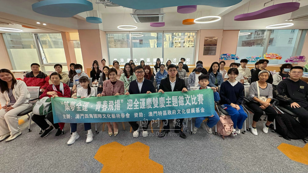 【澳門日報消息】澳門四海國際文化藝術學會主辦,十五運會及殘特奧會澳門賽區籌備辦公室支持,文化發展基金資助的“築夢全運·青春飛揚”迎全運慶雙慶主題徵文比賽,昨日在粵港澳大灣區國際人才驛站(澳門)會議廳舉行頒獎典禮。