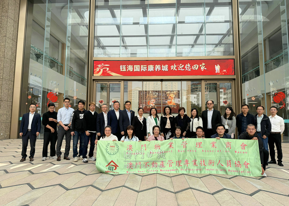 【澳門日報消息】澳門粵港澳大灣區物業及設施管理聯合會、澳門物業管理業商會副會長仇坤儀、陳其詩、吳家權,商會理事長薛婉娜,澳門不動產管理專業技術人員協會副會長楊光及理事長談智賢率領一行20多人代表團,今日前往珠海參觀“珠海鈺海養老服務業項目”。