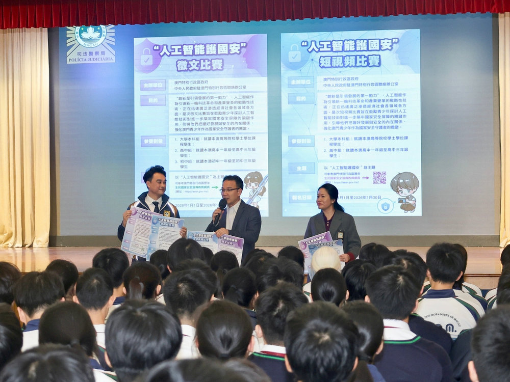 【澳門日報消息】由澳門特別行政區政府與中央人民政府駐澳門特別行政區聯絡辦公室聯合舉辦的“人工智能護國安”徵文及短視頻比賽,現正接受報名。司法警察局積極派員走訪本澳各高等院校及中學,推廣宣傳並鼓勵學生踴躍參與。 自本月上旬起,司警局人員持續展開校園宣傳工作,已走訪本澳24所高等院校及中學,向校方及師生詳細介紹比賽宗旨、主題與規則,並鼓勵學生積極參賽。各校均表示將全力支持和配合特區政府的國家安全宣傳教育工作,人工智能的迅速發展,既為國家安全治理及經濟社會發展帶來促進和賦能作用,同時也伴隨着風險與挑戰,比賽將有助青少年從多角度深入認識此一新興國家安全領域。在當前錯綜複雜的國際形勢下,認識國家安全已成為青年學子應有的責任與擔當,比賽有助於加深青少年對維護國家安全和社會穩定的理解與思考,推動更多青年群體為國家及澳門社會的繁榮穩定貢獻力量。 國家安全主題徵文及短視頻比賽是“全民國家安全教育日”系列活動之一。多年來,兩項比賽均獲得社會各界,尤其是教育界的大力支持,參與人數屢創新高。去年以“我心中的社會安全”為題的比賽,共吸引來自八所高等院校及48所中學,合共超過25,000名學生踴躍參與。 “十五五”規劃提出全面實施“人工智能+”行動,並加強人工智能等新興領域國家安全能力建設,今年比賽以“人工智能護國安”為主題,旨在鼓勵青少年探討人工智能技術對進一步築牢國家安全屏障的關鍵作用,引導他們把握好發展與安全的內在關係,強化澳門青少年作為國家安全守護者的擔當。 徵文比賽分為初中組、高中組及大學本科組,參賽對象為本澳各中學及高等院校學士學位課程學生;短視頻比賽則分為高中組及大學本科組,參賽對象為就讀於本澳高中一年級至三年級及本澳高等院校學士學位課程的學生。有意參賽者可於2026年1月30日前向所屬學校遞交作品。如有查詢,可聯絡司法警察局(電話:88005500,電郵:nam@pj.gov.mo)或教育及青年發展局(電話:84903686)。