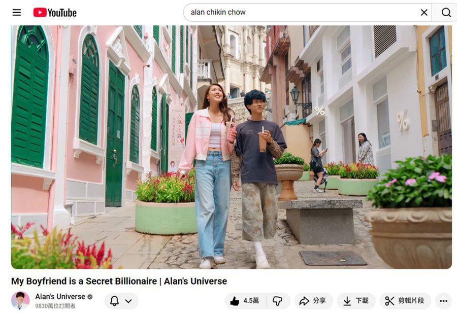 【澳門日報消息】旅遊局與全球YouTube Shorts觀看量排名第一的創作者Alan Chikin Chow合作推出創意短劇,期望藉助創作者的國際影響力,將澳門獨特的城市風貌與文化魅力,以輕鬆幽默的敘事方式呈現給全球Z世代年輕觀眾,持續拓展國際年輕客源市場。 澳場景融爆紅短劇 本次與旅遊局合作,是Alan Chikin Chow首次衝出美國創作項目。短劇以廣受歡迎的美式高中世界觀為背景,通過快節奏、零冷場的搞笑敘事,將澳門標誌性場景融入其中,以澳門城市實景為核心舞台,串聯戀愛巷、黑沙海灘、龍華茶樓、路氹金光大道等地標場景,營造跨城市、跨文化的青春故事。短劇上線兩周已收穫海量觀看流量,累計超過690萬觀看人次,提升澳門知名度及話題討論。 觸全球Z世代觀眾 身兼演員及製作人的Alan Chikin Chow是2025年福布斯創作者榜單第35名的頭部創作者,主理的YouTube頻道“Alan's Universe”目前擁有超過9,800萬訂閱者,在多個英語國家和地區的Z世代觀眾中具有極高影響力。本次創意短劇項目更邀請另一名人氣華裔創作者Steven He客串,他的個人跨平台粉絲總量超過1,700萬,進一步擴大作品的社交媒體聲量與討論熱度。 造理想目的地形象 “2025澳門國際創作者大會”今年10月在澳門舉行,Alan Chikin Chow受邀參與並在活動上分享創作經驗。他在訪問中特別提到,澳門戀愛巷中葡融合建築的獨特風格令人印象深刻,而路氹金光大道則是為Z世代量身打造的打卡場景。希望通過作品成功讓觀眾感受到澳門獨特的文化氣質與街區氛圍,加強一站式旅遊目的地印象。 貼近年輕受眾語境 繼旅遊局TikTok賬號印尼語及泰語22集短劇錄得超過1.8億播放量後,續與不同全球頭部創作者聯動,探索“短劇+旅遊體驗”的行銷潛力,以更貼近年輕受眾的方式,展現澳門“世界旅遊休閒中心”的豐富內涵。 未來,旅遊局將繼續深化“旅遊+”跨界融合,迎合線上傳播趨勢,通過更多元的創新合作與市場推廣模式,吸引全球不同客群的旅客,親身體驗澳門的獨特魅力。