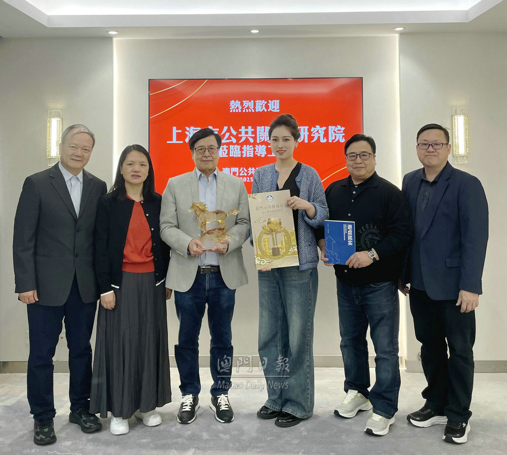 【澳門日報消息】上海市公共關係研究院一行訪澳代表團由副院長蔣淶帶隊,今日下午三時到訪澳門公共關係協會,受到該會會長歐潤光、理事長廖悅興、監事長歐潤榮等熱切接待,雙方就共同關心的議題深入交流。
