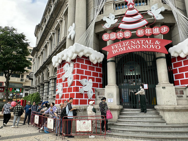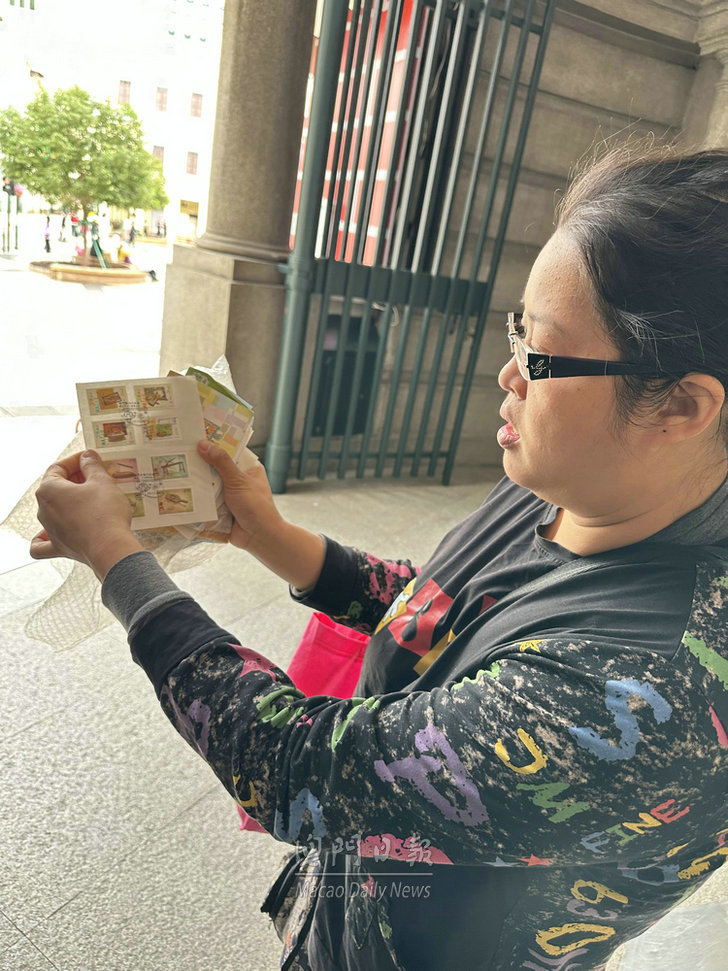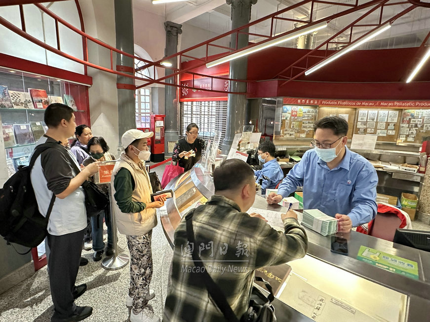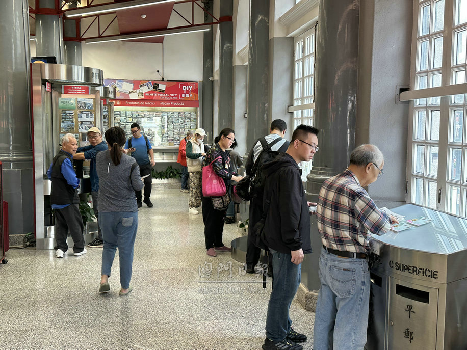 【澳門日報消息】為慶祝澳門特別行政區成立26周年,特區政府今日舉辦一系列活動,與居民及旅客共同分享節日喜悅。其中,郵電局於上午9時至下午2時,在郵政總局集郵商店設置臨時櫃台,提供加蓋“澳門特別行政區成立二十六周年紀念”紀念郵戳服務,並發售紀念封,吸引眾多市民及遊客到場參與,現場洋溢熱鬧歡騰的節日氣氛。 上午活動尚未開始,已有不少居民提早到場排隊,期待加蓋紀念郵戳。櫃台開設後,人流逐漸增加,現場秩序井然,不少集郵愛好者細心挑選紀念封,並與同行親友分享收藏心得。紀念封每枚售價為五元,設計精美,不少參與者表示極具收藏價值。 排頭位的居民鄧小姐是集郵愛好者,今早七時便到郵局排隊。她興奮地展示“戰利品”,並表示今天特意過來蓋章留紀念,希望澳門以後更加繁榮,大家的生活越來越好,祖國越來越強大。 來自廣州的李先生稱,這次來澳門旅遊,沒想到正好趕上回歸紀念日。特意買了幾枚紀念封,準備寄給朋友和家人。這種親手蓋章、寄送祝福的方式很有儀式感,比單純買紀念品更有意義。更讓他深刻感受到澳門濃厚的中西文化交融特色,也為澳門回歸26年來的發展感到高興。 現場除了郵戳服務,亦有不少居民與旅客在郵政總局外合影留念,彼此問候祝賀,洋溢溫馨歡樂的氛圍。