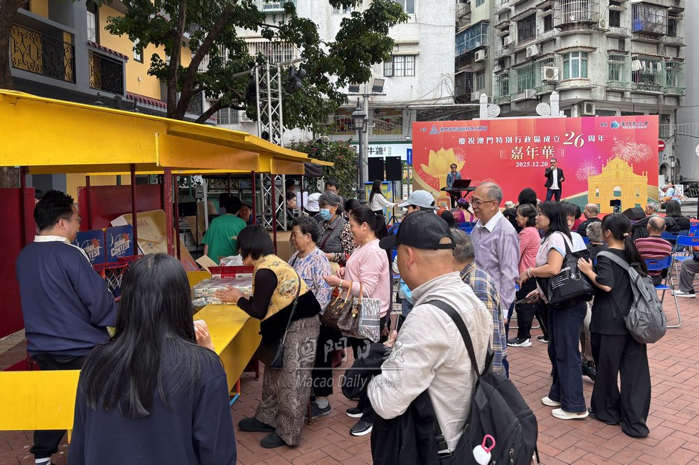 【澳門日報消息】新馬路坊會今日舉辦“慶祝澳門特區政府成立二十六周年嘉年華”,設舞台表演及多個攤位遊戲,期望藉此與眾同樂,共賀澳門回歸祖國廿六周年。 嘉年華開幕式今晚七時半假康公廟前地舉行。新馬路坊會會長崔浩然致詞稱,期望透過舉辦是次嘉年華,以豐富多彩的文化展演,全方位展示澳門的獨特魅力和蓬勃發展的活力,讓參與者感受到澳門這座城市的溫度與激情。未來,該會將充分發揮社區的橋樑紐帶作用,團結廣大澳門同胞,凝聚各方力量,努力推動澳門經濟適度多元發展,提升居民福祉。