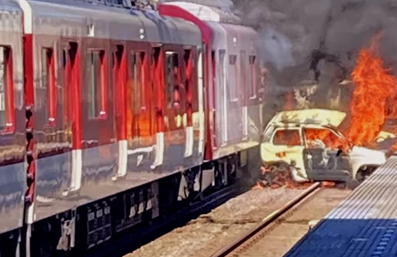 【澳門日報消息】綜合報道:日本京都府精華町發生列車與汽車相撞,汽車司機死亡。 京都府當地時間20日上午11時許,一列特急列車在通過鐵路道口時與一輛汽車發生相撞,汽車一度被拖行並起火,引燃列車部分車體,火警在約50分鐘後才被撲滅,汽車只燒剩車架。汽車司機其後證實死亡。 發生事故的兩列車廂上合共580人,全部安全疏散。受事故影響,近鐵京都線新田邊至高之原站列車一度暫停服務。