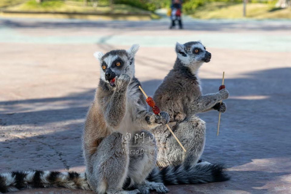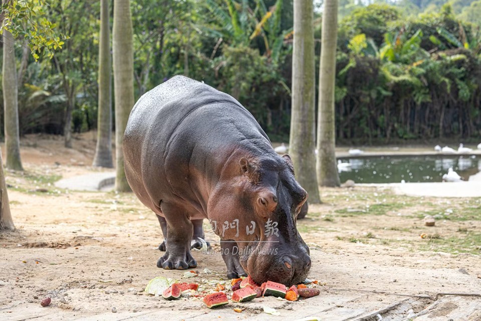 【澳門日報消息】今日冬至,清遠長隆森林王國的動物們齊過冬,非洲象、河馬、黑叢尾猴、環尾狐猴等動物相繼收到了保育員為其搭配的應季食材,享用起“冬至宴”,展現出多樣的自然行為與進食趣味。 在非洲象生活區,保育團隊用冬瓜和胡蘿蔔為牠們特製了“節日蛋糕”,它們沉穩地用長鼻捲起食物送入口中,悠閒享用。河馬一家則獲得了整個西瓜,牠們張開寬大嘴巴一口吞下的場面,引得圍觀遊客連連驚歎。靈長類動物區域同樣熱鬧:黑叢尾猴圍抱著“南瓜串”大快朵頤;而園內的“小明星”——大眼睛、活潑好動的環尾狐猴,則靈巧地拿著串好的紅棗,開心地“擼串”。 清遠長隆森林王國高級保育員嚴玉標介紹,為了讓動物舒適過冬,園區採取了“膳食調節+環境保溫”相結合的方式。在飲食方面,保育團隊會依據動物生理特點,適當增加高熱量食物,以提高其脂肪儲備,讓毛孩子們“貼膘”禦寒。此次提供的食材均經營養與安全評估,既符合動物日常膳食需求,也兼顧了冬季“食補”的實際需要。 除了“食補”之外,園區還對部分來自熱帶地區的怕冷動物採取了針對性保溫措施。例如,為來自非洲馬達加斯加的環尾狐猴配備了草箱、墊料和保溫燈,使室內溫度維持在適宜範圍內,確保它們在冬季也能舒適活動、享受“日光浴”。 未來,清遠長隆森林王國將繼續結合季節變化與動物行為特點,開展各類自然科普與生態教育活動,讓公眾在趣味觀察與互動中感受生命的神奇,增進對生物多樣性保護的理解,共同踐行人與自然和諧共生的理念。