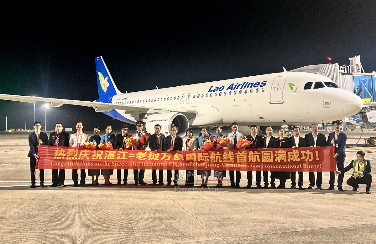 【澳門日報消息】今日傍晚7時許,湛江吳川國際機場停機坪上,隨著老撾航空QV863航班平穩降落,並緩緩通過象徵民航最高禮儀的“水門禮”,標誌著湛江吳川國際機場2022年轉場投運以來首條國際航線正式通航,也是外籍航司首次開通粵西國際航線,開啟粵西聯通東盟新通道。