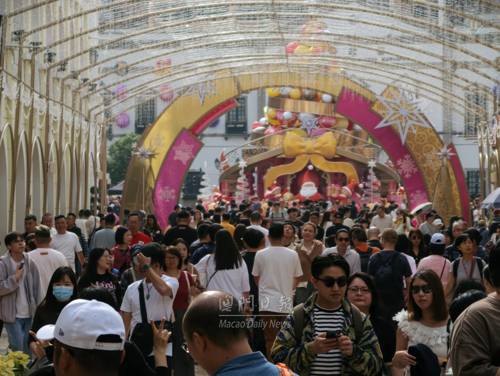 【澳門日報消息】今日是平安夜,不少旅客來澳感受聖誕氣氛,中區人氣暢旺。治安警公佈,截至上午11時,本澳各口岸共錄得18.2萬人次出入境,其中入境旅客三萬多人次,主要經關閘口岸和港珠澳大橋口岸過關;出境旅客則有1.4萬人次。