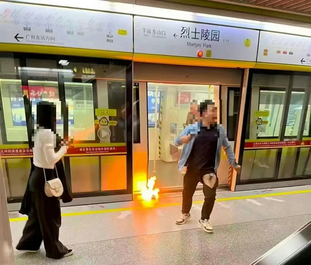 【澳門日報消息】廣州地鐵昨晚發生充電寶自燃事件。現場相片顯示,一趟列車於烈士陵園站停站時,屏蔽門處有異物起火,並伴有煙霧。同時,一名男子在一旁呼喊求助,長褲疑似被燒穿。