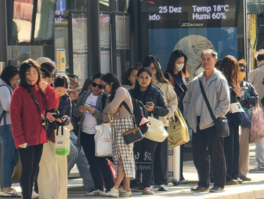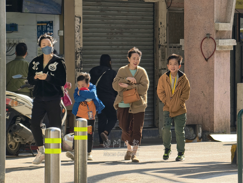 【澳門日報消息】今日天氣清涼,下午二時半錄得約18攝氏度,較昨日下降約8度,加上部分街道較為“食風”,讓人體感更冷。 氣象局表示,冬季季風已抵達華南沿岸,今日聖誕節本澳氣溫下降,大致多雲,初時有微雨,晚間氣溫將降至最低約14度。預料明日短暫時間有陽光,天氣寒冷及乾燥,最低溫進一步跌至12攝氏度左右。居民需留意天氣變化,適時添衣及小心防火。