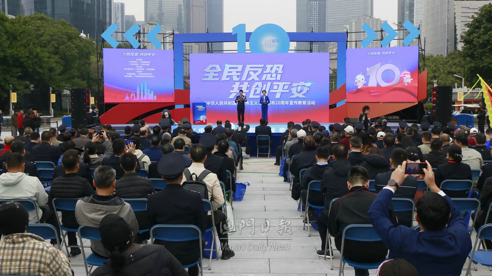 【澳門日報消息】廣州今日下午舉行“全民反恐共創平安”《中華人民共和國反恐怖主義法》頒佈實施十周年主題宣傳活動。活動以“動態+靜態”“線上+線下”結合,“搭台展演+成果展覽+裝備展示+互動體驗”的模式舉行,集中展示廣州反恐怖工作成效,也讓市民在“看、學、練、感”中提升安全防範意識和能力。