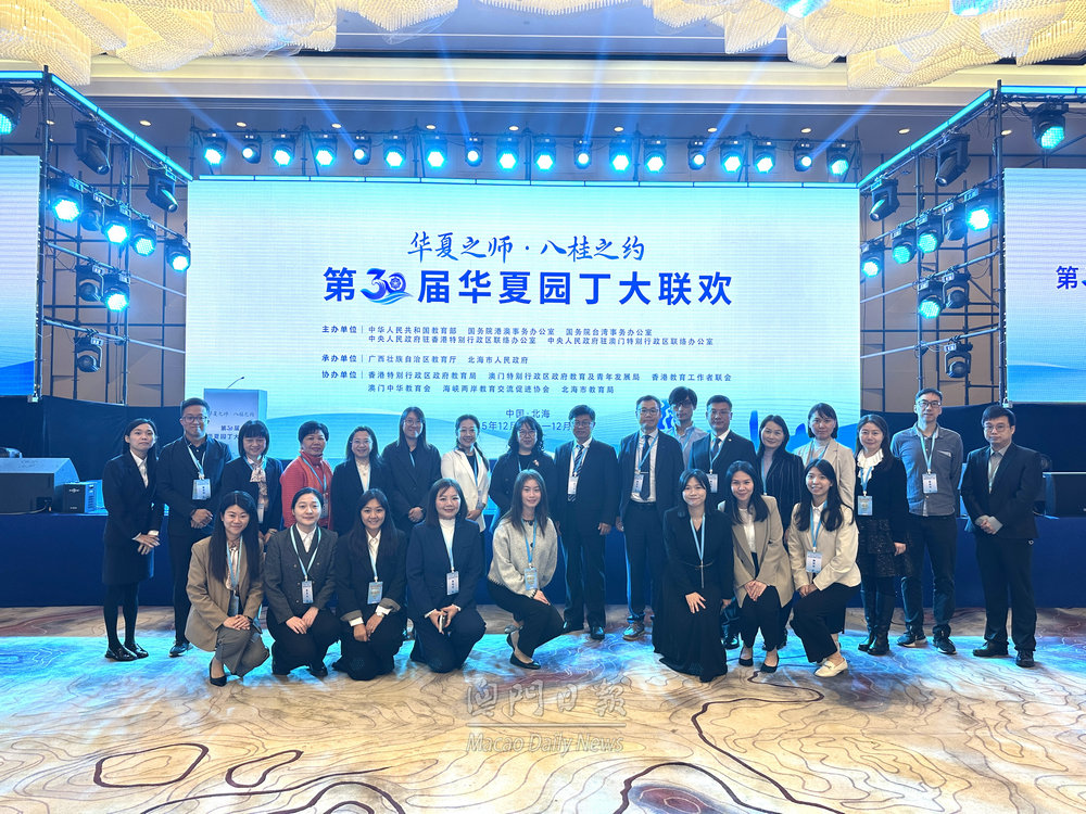 【澳門日報消息】由國家教育部、國務院港澳辦、國務院台辦、香港中聯辦及澳門中聯辦主辦,廣西壯族自治區教育廳、北海市政府承辦的“第三十屆華夏園丁大聯歡”開幕式今日在廣西北海市舉行,400名來自內地、港澳台地區及海外的華人教師代表參與。 今屆活動以“華夏之師·八桂之約”為主題,開幕式今日上午9時在北海富麗華大酒店舉行。國家教育部港澳台事務辦公室主任、國際司司長楊丹,國務院台辦交流局局長李京文,廣西教育廳廳長閆炳辰,廣西北海市市長李剛,香港教育局局長蔡若蓮,澳門教青局副局長阮佩賢,廣西教育廳副廳長伍錦昌,香港中聯辦二級巡視員何金暉,澳門中聯辦教青部三級調研員王婷婷,澳門中華教育會會長鄭洪光等出席。 楊丹致開幕詞表示,“華夏園丁大聯歡”活動自1992年創辦以來,累計邀請逾8,000名來自內地、港澳台地區及海外的華人教師參加,是一個認識祖國、增進認同、凝聚智慧、共同發展的專業平台。冀充分利用大聯歡提供的對話渠道,推進內地與港澳台學校在課程共建、師生互訪、教研協同等方面深化交流合作,共同提升育人水平,為教育強國建設凝聚更多的智慧和力量。 阮佩賢致詞表示,回歸以來,在中央政府的大力支持和指導下,澳門特區政府與教育界同心奮進,推動澳門教育發展。在高等教育方面,澳門高等院校的排名穩步上升,澳琴國際教育(大學)城與粵港澳大灣區全國高校區域技術轉移轉化中心正有序建設。在非高等教育方面,愛國愛澳內容已納入日常課程,讓學生更全面認識祖國的歷史文化和發展,提升國家認同感與民族自豪感。 同時,澳門特區政府高度重視推動澳門師生“走出去”,拓展跨地區教育交流合作。“華夏園丁大聯歡”正是教育交流的重要平台,不僅促進深入交流,相互學習,更能凝聚共識,攜手共進,為中華民族的教育發展貢獻力量。 開幕式後,廣西民族大學教授卞成林作“何為廣西,何以中華——從中華民族共同體到人類命運共同體的廣西”專題報告。