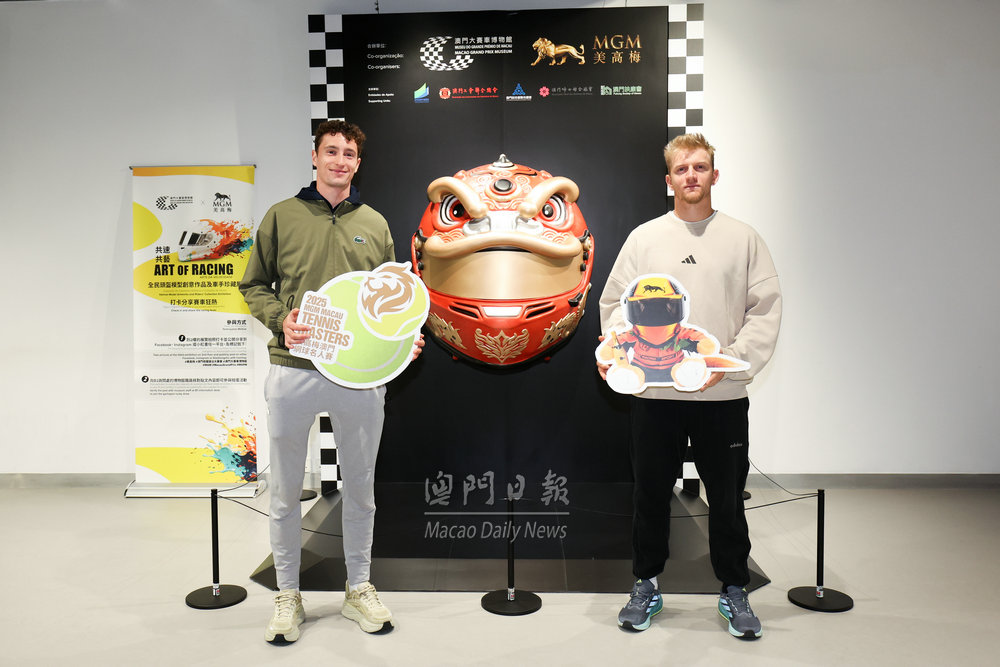 【澳門日報消息】作為“2025美高梅澳門網球名人賽”的延伸活動,美高梅特邀國際網球明星亨比亞及達維度域治·科堅拿今日上午11時參觀大賽車博物館。 期間,球星們深入了解澳門的大賽車歷史和文化,試駕三級方程式模擬器,特別探訪美高梅《共速共藝》展覽,在醒獅頭盔打卡點留下精彩瞬間。
