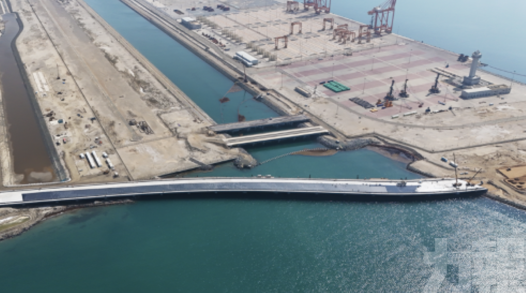 近日,由中國港灣承建、中交四航局參與建設的沙特吉贊工業城保稅區至人工島連接橋項目迎來重要建設進展。作為連接保稅區與人工島的關鍵海上通道,該項目已順利完成I梁吊裝、橋面鋪裝以及護欄和路燈基礎施工,主體結構全面成型,施工目標正穩步向全線貫通前進。