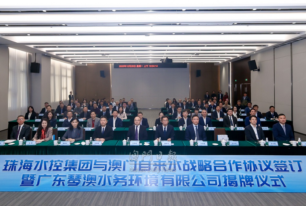 【澳門日報消息】珠海水控集團與澳門自來水戰略框架協議簽署暨廣東琴澳水務環境有限公司揭牌儀式,今日上午在深合區市民中心舉行。 因應深合區建設正全面提速,產業集聚與人口增長對高標準水資源保障和涉水服務需求日益迫切,珠澳兩地政府精準對接國家戰略與民生期盼,推動珠海水控集團與澳門自來水秉持“平等自願、優勢互補、互惠共贏”原則達成該項戰略框架合作。 雙方以水資源為紐帶錨定五大核心合作領域推進琴澳一體化建設,包括共建深合區高標準供水網絡,保障產業與民生用水;優化澳門原水跨境輸送調度,築牢水安全防線;聯合制定供水技術標準,推動兩地標準互認銜接;研發智慧水務系統,構建全鏈條智能調度平台;優化服務流程,實現“同標同質”的民生服務體驗。 為更好服務深合區水務事業,珠海水控集團整合相關業務與資源,組建廣東琴澳水務環境有限公司,將全面承擔對澳原水供應保障、橫琴區域供排水、污水處理、防汛排澇、固廢處理等全鏈條服務。 活動現場發佈《橫琴粵澳深度合作區水務高質量發展研究報告》,顯示未來5年將採用“政府主導+企業協同+社會參與”模式,投入超過32億元人民幣,圍繞供水保障、排水治理、綠色循環、智慧水務四大主線,推動深合區水務事業從“安全可控”向“優質高效”跨越。 澳門中聯辦經濟部部長劉德成、珠海市副市長胡新天、深合區執委會副主任張國基、澳門海事及水務局局長黃穗文、珠海市水務局黨組書記兼局長許蓓蕾等兩地政府代表,共同見證上述簽約和揭牌儀式。