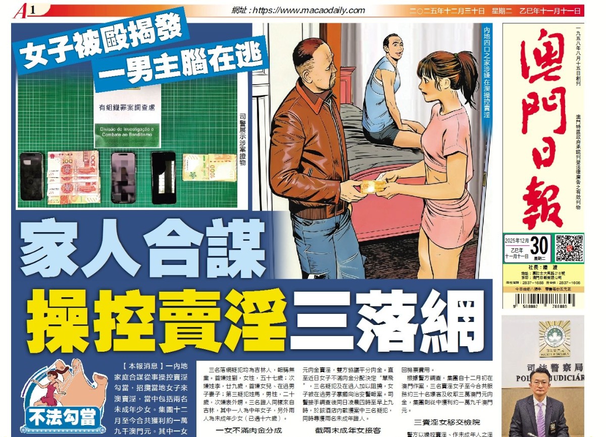 【澳聞頭條】家人合謀操控賣淫三落網 【要聞頭條】解放軍圍台演習開局即打 【經濟頭條】構珠琴澳產業生態圈 助企出海 【體育頭條】黑熊“豐”騷三連勝