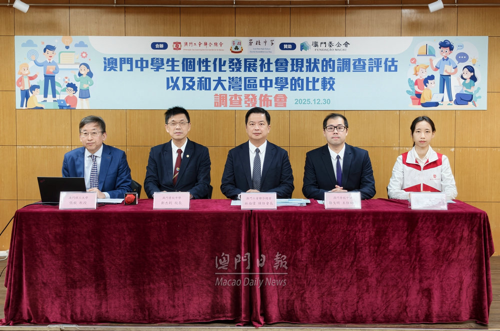 林倫偉指出,近九成七受訪澳生曾使用AI工具輔助學習,過半數受訪澳生認同使用AI工具對提升成績有幫助,且在啟發思考方面給予正面評價,反映他們在資訊科技使用上具良好基礎。然而,學生在自主學習、長遠規劃與創新能力等方面仍有明顯進步空間。為此,建議將中學生個性化學習的推進,納入澳門青年發展與粵港澳大灣區建設的整體規劃框架之中。學校應推動發展目標由成績與升學導向,逐步轉向學業、能力與品格並重,將學習能力、創新思維、問題解決、團隊合作和責任承擔等列為核心素養指標;同時於課程活動中融入生涯規劃、職業認知與社會責任教育,引導學生接觸AI工具時,樹立正確的勞動觀和價值觀。
