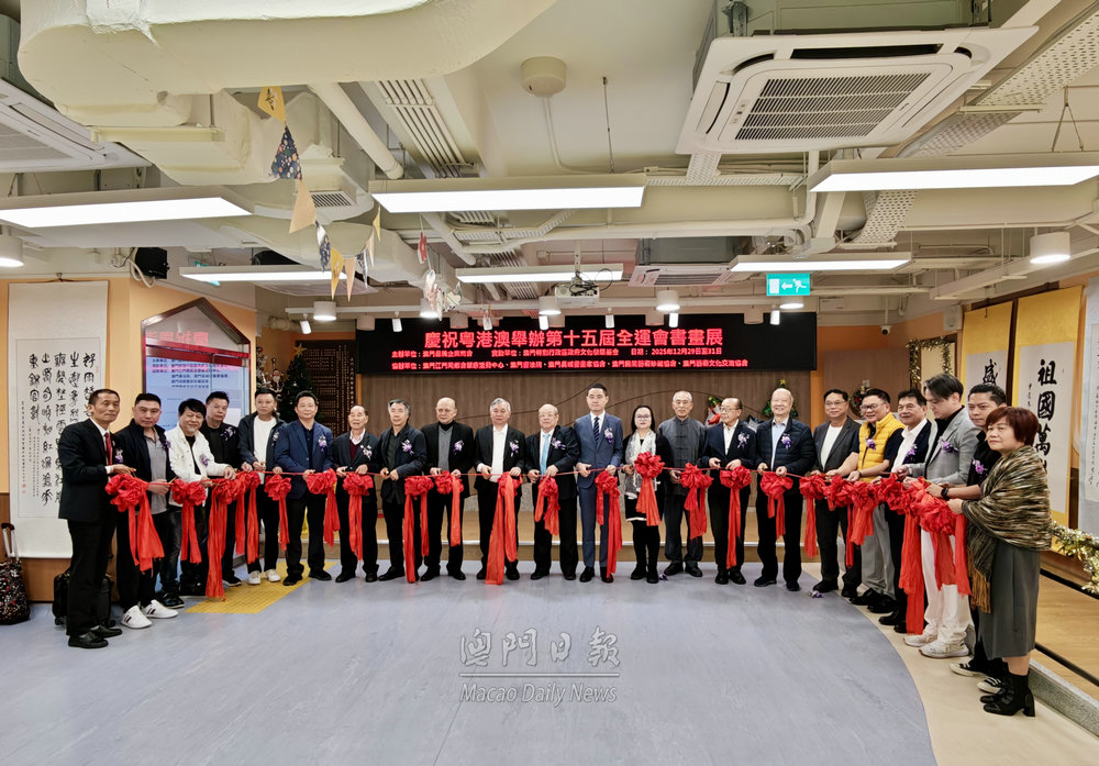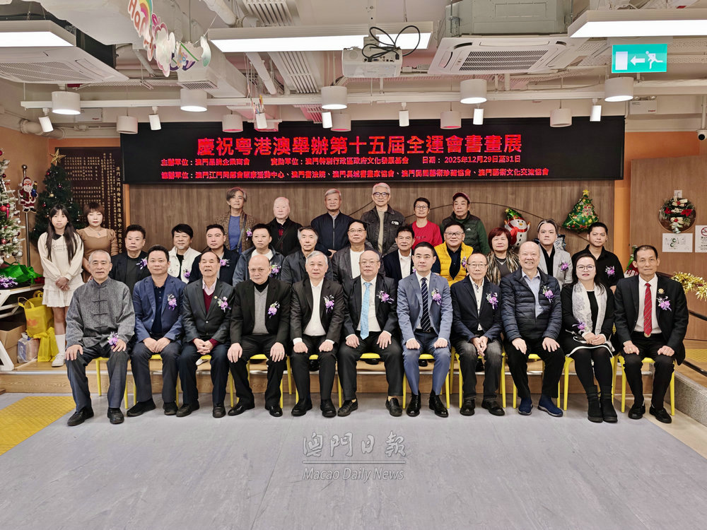 【澳門日報消息】由澳門品牌企業商會主辦,澳門江門同鄉會頤康活動中心、澳門書法院、澳門長城書畫家協會、澳門民間藝術珍藏協會、澳門藝術文化交流協會協辦,獲文化發展基金資助的“慶祝粵港澳第十五屆全運會”主題書畫展,今日上午11時半在江門同鄉會頤康活動中心開幕,匯聚三地知名書畫家約200幅精品,藉此慶祝第十五屆全運會舉行,弘揚中華優秀傳統文化,促進灣區文化交流與合作。