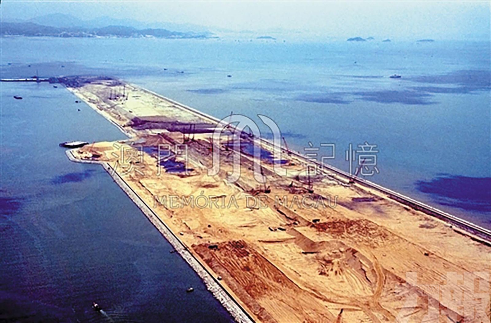 興建中的澳門機場跑道。 (張耀攝,摘自 「澳門記憶」文史網)