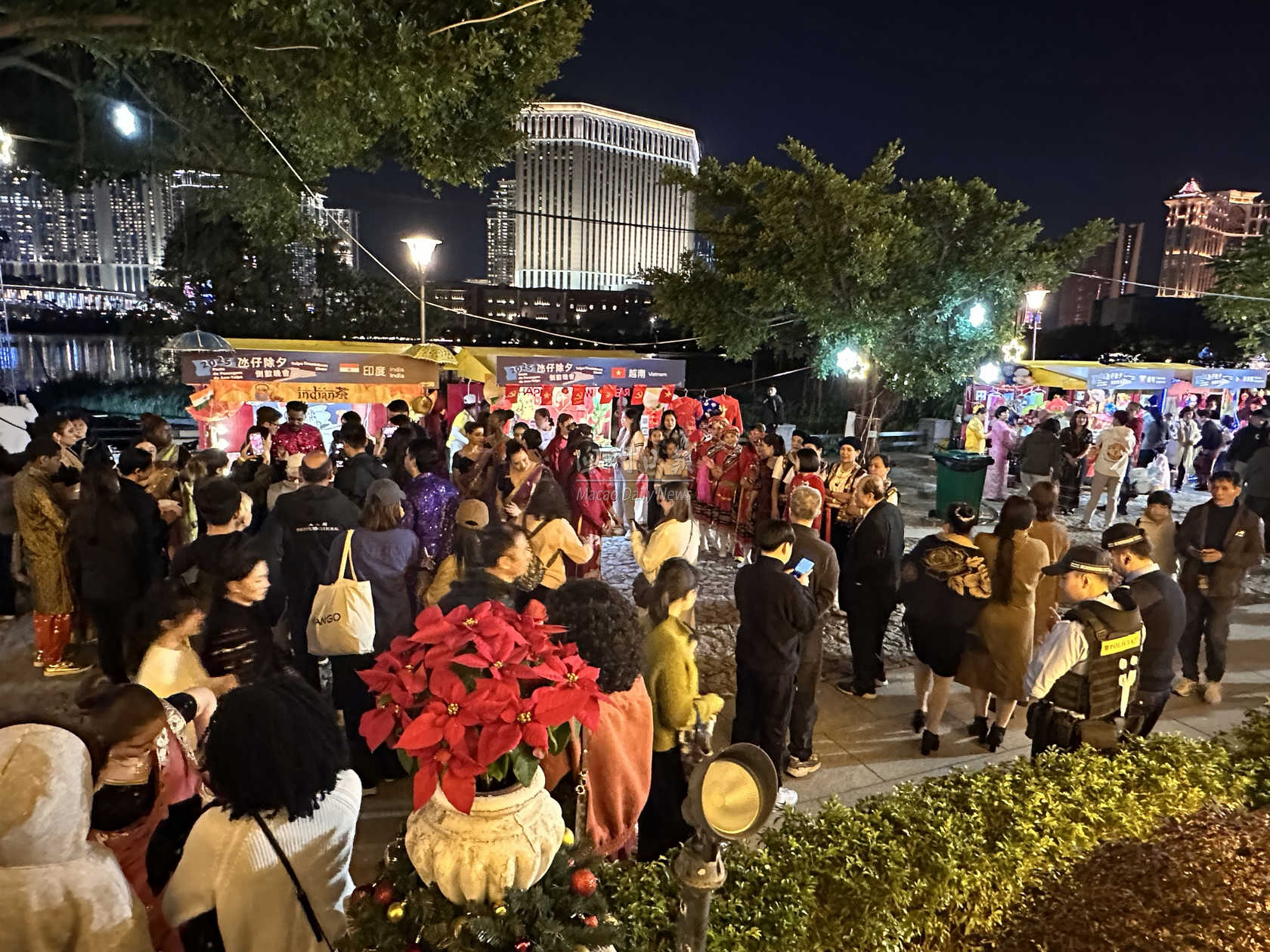 【澳門日報消息】“2025氹仔除夕倒數晚會”今晚9時至元旦凌晨0時15分在龍環葡韻舉行,晚會以多元文化共融為主軸。現場設有特色文化攤位,由居澳的菲律賓、印度、緬甸及越南社群展示當地傳統服飾、旅遊資訊、地道小食及飲品,彰顯澳門族群文化共融、和諧共處的都市生活氛圍。 氹仔除夕倒數晚會,由香港歌手湯寶如擔任壓軸表演嘉賓,獻唱多首經典歌曲;本地音樂界包括青原、澳門人樂隊、Bossa Eva與Joao Gomes & Band輪番獻唱帶動現場氣氛;一系列文化特色演出展現城市多元魅力,包括古維德及澳門印度文化協會、居澳菲律賓舞蹈團、緬甸藝團、越南藝團分別帶來現代與傳統歌舞表演,以及魔術師馮兆恆表演魔術,吸引大批居民及旅客參與,現場氣氛熱鬧、愉快。