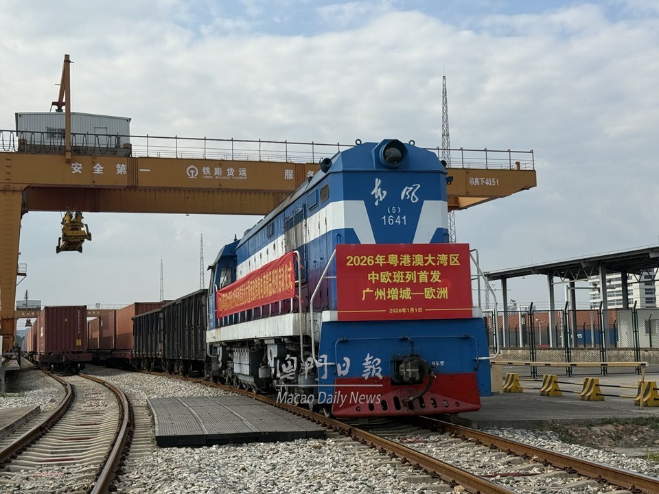 【澳門日報消息】今日粵港澳大灣區廣州東部公鐵聯運樞紐增城鐵路物流園內,新年第一趟中歐班列在汽笛聲中緩緩駛出。班列滿載家居用品、冬季保暖物資等“廣貨”,預計將於14天後抵達歐洲,為當地市場帶去來自粵港澳大灣區的優質商品,也為新一年大灣區與歐亞之間的經貿往來拉開序幕。