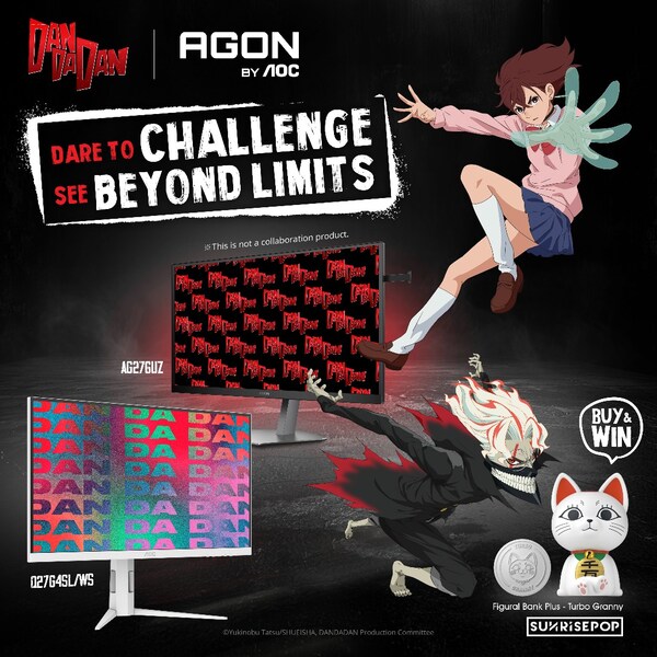 香港2025年12月20日 /美通社/ -- 當「電競界法拉利」AGON by AOC 遇上「動漫界荷里活」《DAN DA DAN》,一場視覺革命正式引爆!連續六年蟬聯 全球銷量No.1 的 AGON by AOC 今日重磅宣布,首度與神級動漫IP《DAN DA DAN》戰略合作,並以旗下全新環形 – 圓偏光護眼顯示器(Circularly Polarized Monitors)作為主打科技,讓粉絲暢享「睇足全日零眼倦」的沉浸式動漫體驗!