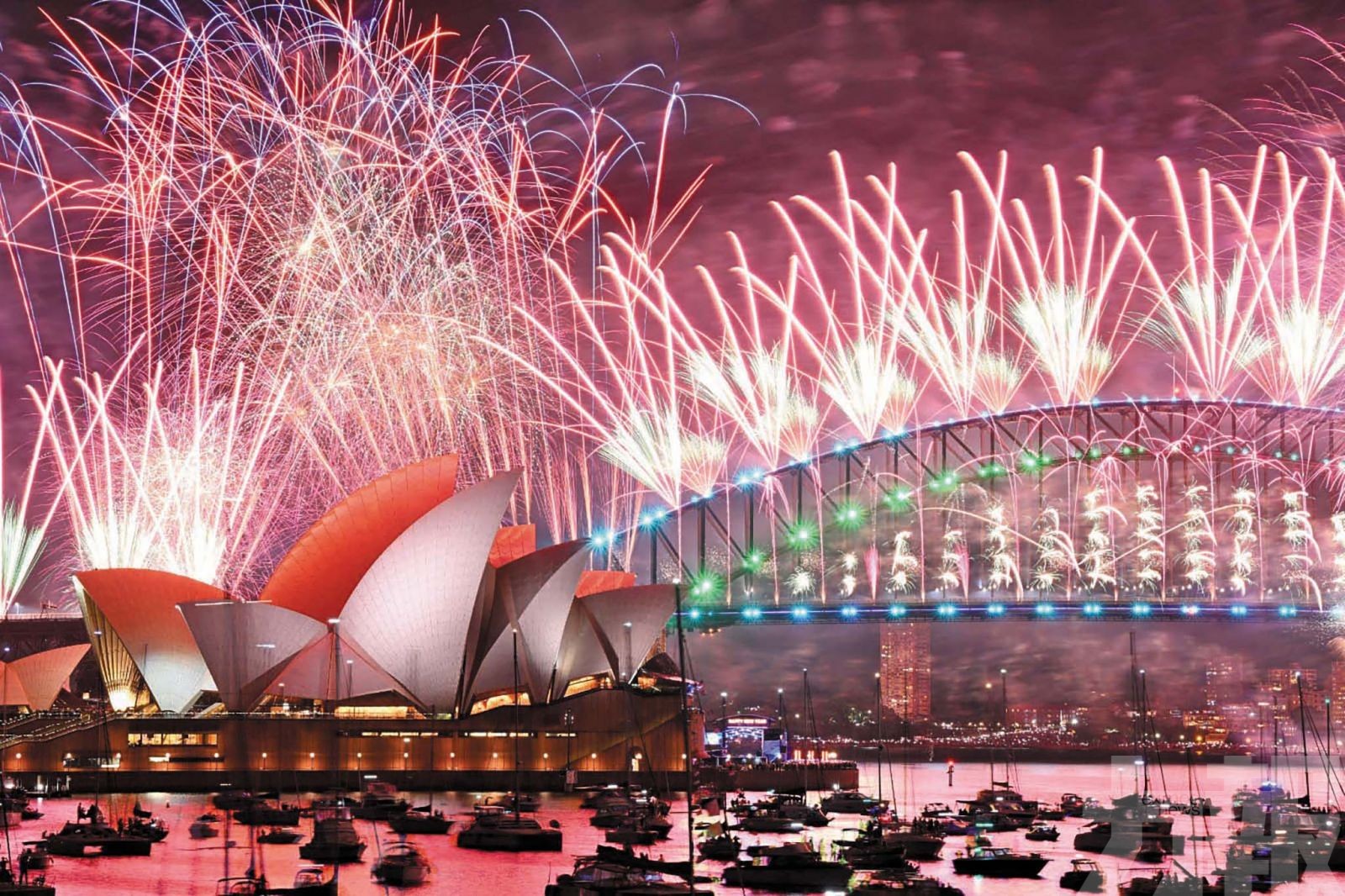 悉尼港於跨年夜上演盛大煙花匯演,約4萬發煙火從港灣多個位置升空。 (網絡圖片)