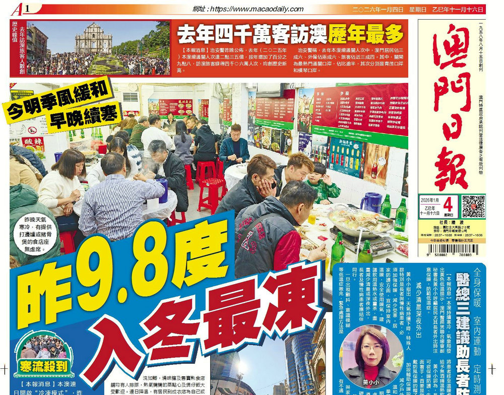 【澳聞頭條】昨9.8度入冬最凍 【要聞頭條】美強闖委國擄劫馬杜羅 【經濟頭條】電器舖難捱 冀推專項消費補貼 【體育頭條】凌鋒A橫掃培正C