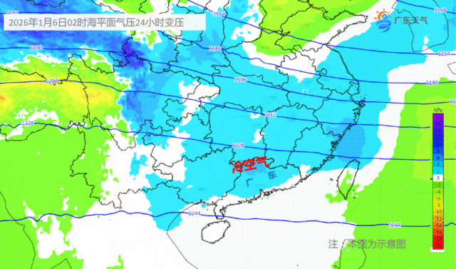 廣東氣象部門表示,今日晚間,在中緯度低渦東移的引導下,一股弱冷空氣南下自北向南影響廣東,氣溫將進一步下降,高海拔山區將有霜凍和冰凍。明日廣東低層轉為較一致的偏北風,氣溫有小幅下降。後日(7日)有弱冷空氣繼續補充,預計過程最低氣溫將出現在7日、8日早晨,早晚寒冷,晝夜溫差大,防寒保暖不能放鬆。