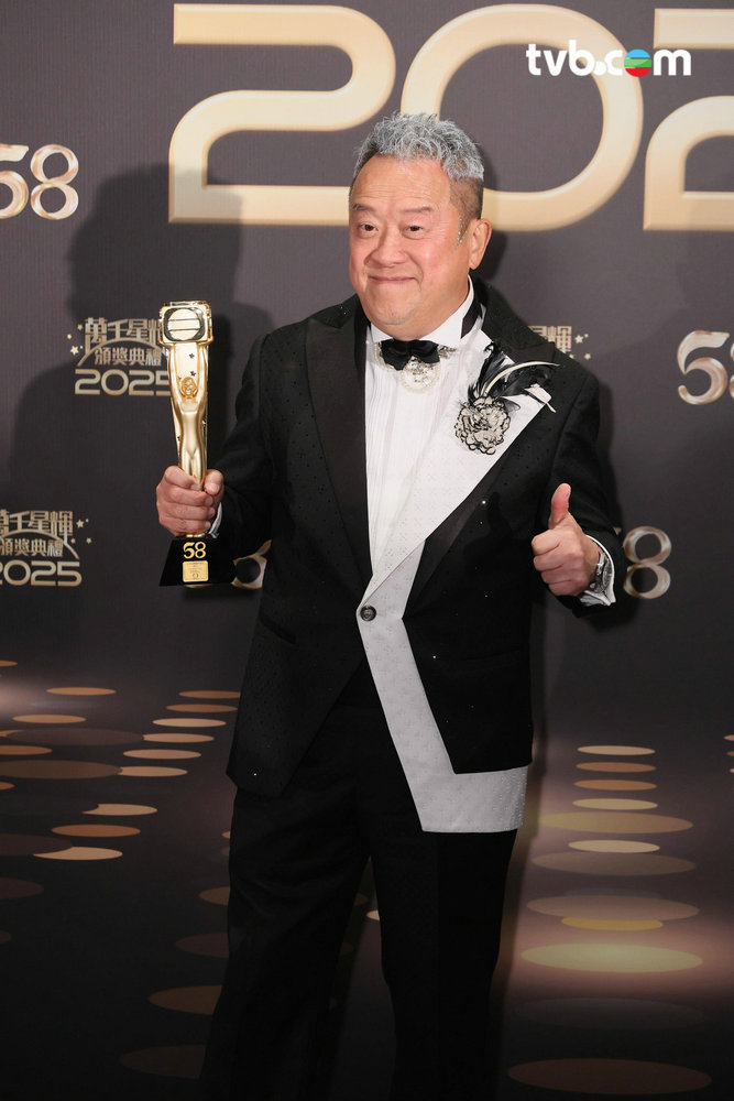 昨晚“萬千星輝頒獎典禮2025”尾聲,邀譚詠麟頒發“萬千光輝榮譽傳奇大獎”,曾志偉在台上宣佈卸任總經理(節目內容營運),表示江郎才盡,選擇卸任。TVB同時宣佈委任曾志偉為新成立諮詢委員會召集人。