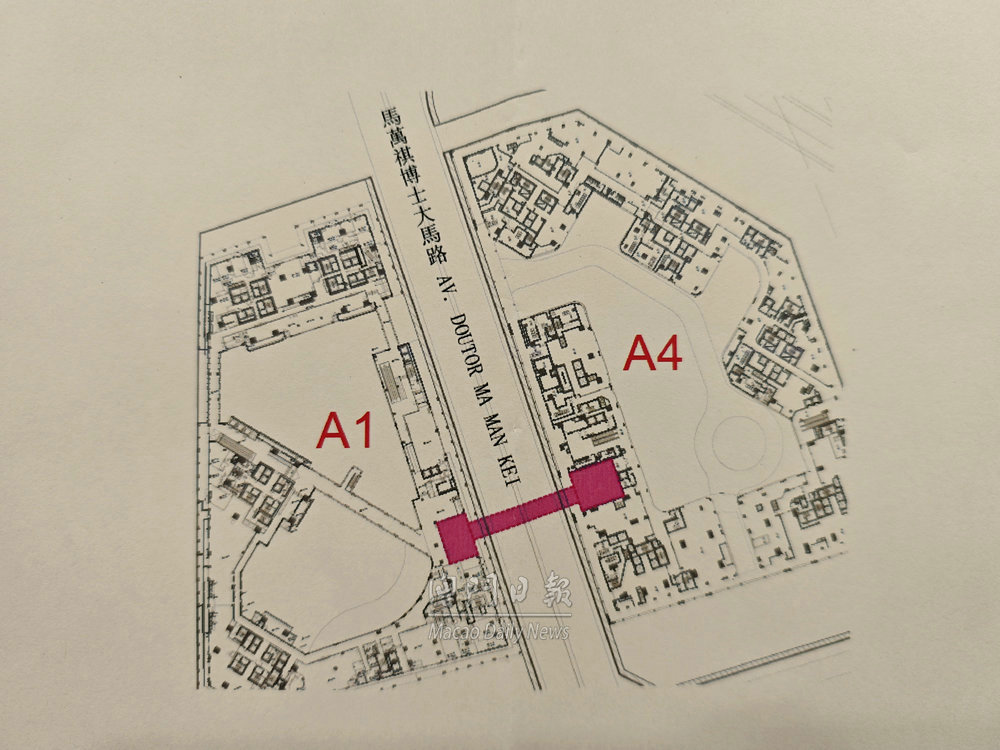 【澳門日報消息】為配合新城A區發展,創造無障礙及安全的人車分隔步行環境,方便居民出行。公共建設局今日上午九時半就“新城A區連接A1至A4地段行人天橋設計連建造工程”舉行公開開標。公建局工程師譚永濠表示,是次招標共收到15份標書,工程預計於今年第二季動工。 譚永濠介紹,該行人天橋全長約37米、寬約3米,將橫跨馬萬祺博士大馬路,接駁A1及A4地段兩側建築物,並於兩個地段內各設置一個落腳點。天橋設計採用單跨形式建造,結構高度約為兩層樓,施工期間將不會在道路增設中間支柱,以永久性解決對交通幹道的影響。天橋將附設升降機、扶手電梯及無障礙設施。 公共建設局指出,工程最長施工期為360個工作天,實際完工日期將於判標程序完成後確定。施工期間,局方將與交通事務局緊密協調,透過優化交通疏導方案,盡量減少工程對馬萬祺博士大馬路主幹道交通的影響。 據資料,A1及A4地段均為2021年開展申請的經濟房屋項目,兩經屋的建造工程預計於今年8月竣工。另外,A1地段地庫一層並規劃設有公交停泊調度中心,主要供巴士停泊及調度使用,不作乘客上落用途。