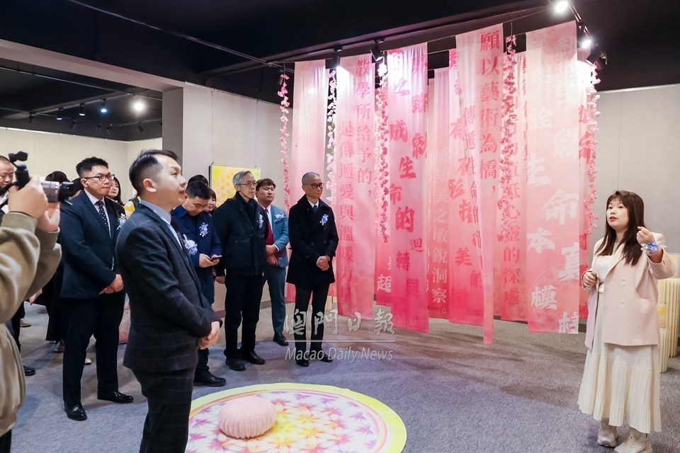 【澳門日報消息】澳門美術協會主辦,澳門文化界聯合總會、澳門青年美術協會協辦,文化發展基金資助的“心耕藝境·美育潤心——蕭雅雯藝術作品展”今日於澳門何族崇義堂盛荷堂展廳揭幕,精選蕭雅雯近年創作的三十餘件多元形式的藝術與文創作品,以“曼陀羅:個人成長三部曲”為核心敘事軸,立體呈現其在視覺藝術創作、心理成長與美育實踐三大領域的跨學科探索成果。
